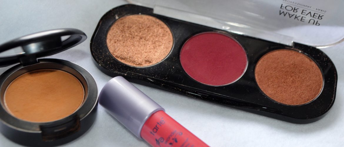 This lighter golden shade on the left is called Golden Fawn from Makeup Forever and the pinky color next to it is called Morello Cherry. I LOVE these shades and I use them all the time! One day (more like everyday) I was running late and didn’t have time to keep digging around in my makeup for eighty-million products so I whipped these on as my highlight and blush and it was a wrap! They became my favorite products not just for the eyes but for my face as well!